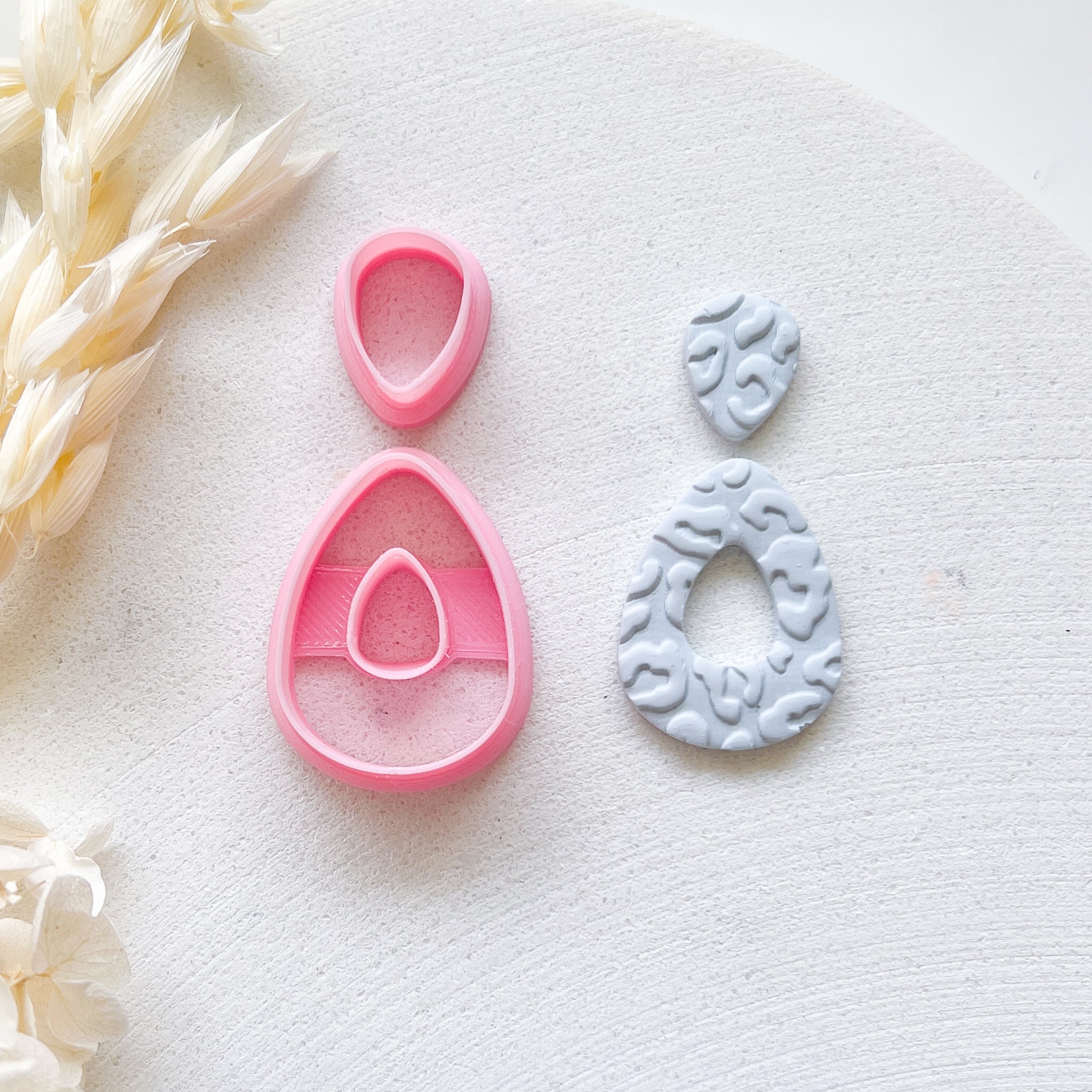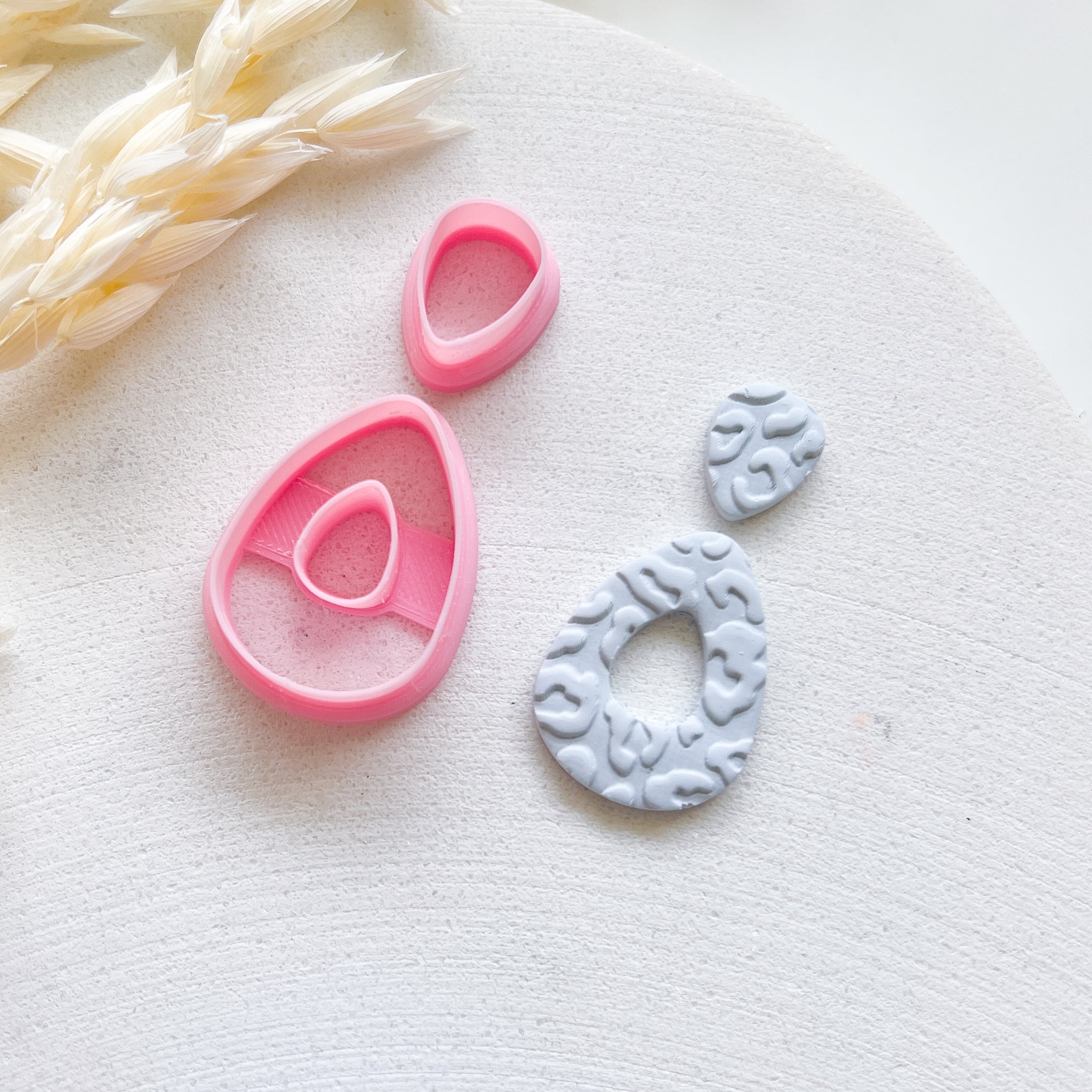 The "Sara" polymer clay cutter, and FREE matching topper. Designed by Cat Carmady in Cairns, Australia for use with polymer clay slabs.