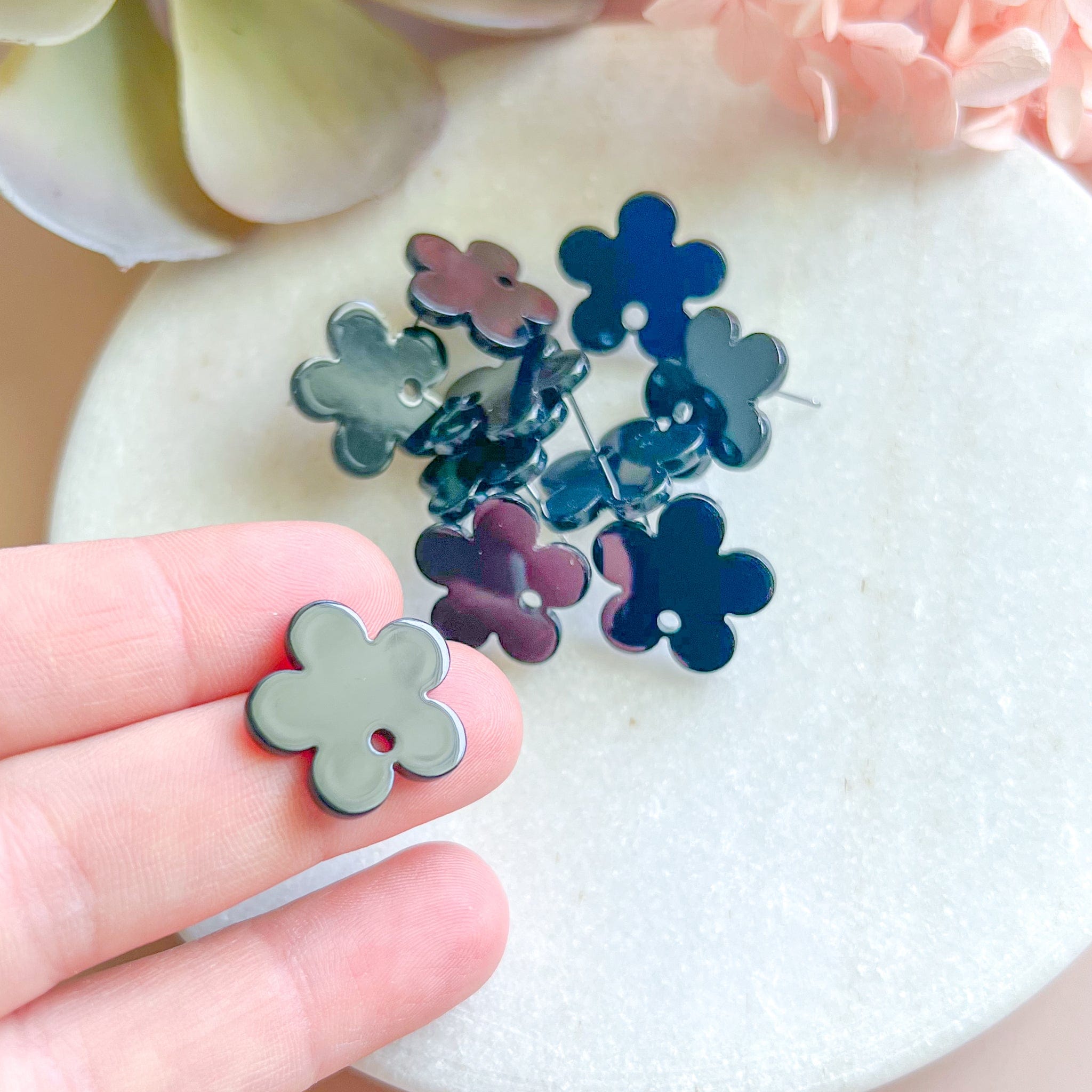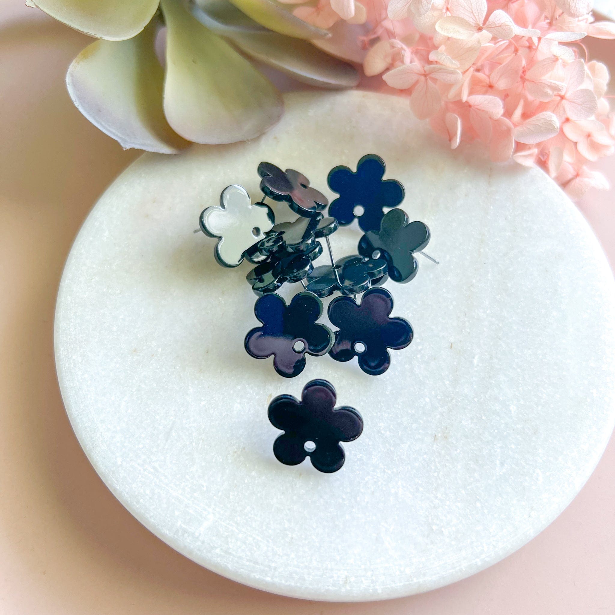 "Flower" Earring Post - Black (10 pcs)