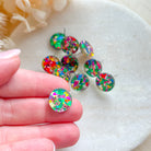 "Chunky Glitter Circle" Earring Posts - Green (6 pcs)