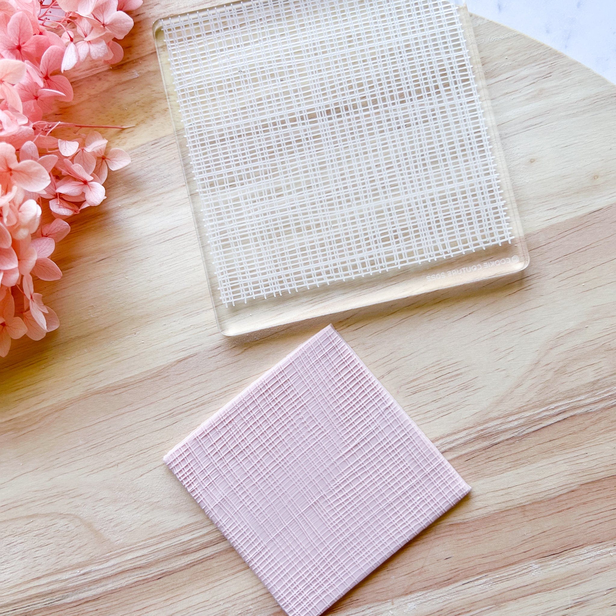 Made from 6mm clear cast acrylic, the pattern is engraved into the surface of the acrylic, and when the clay is pressed onto the plate, a raised impression is created.